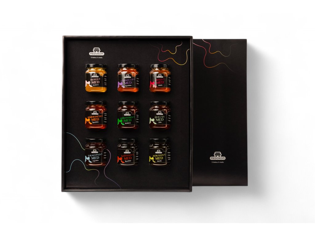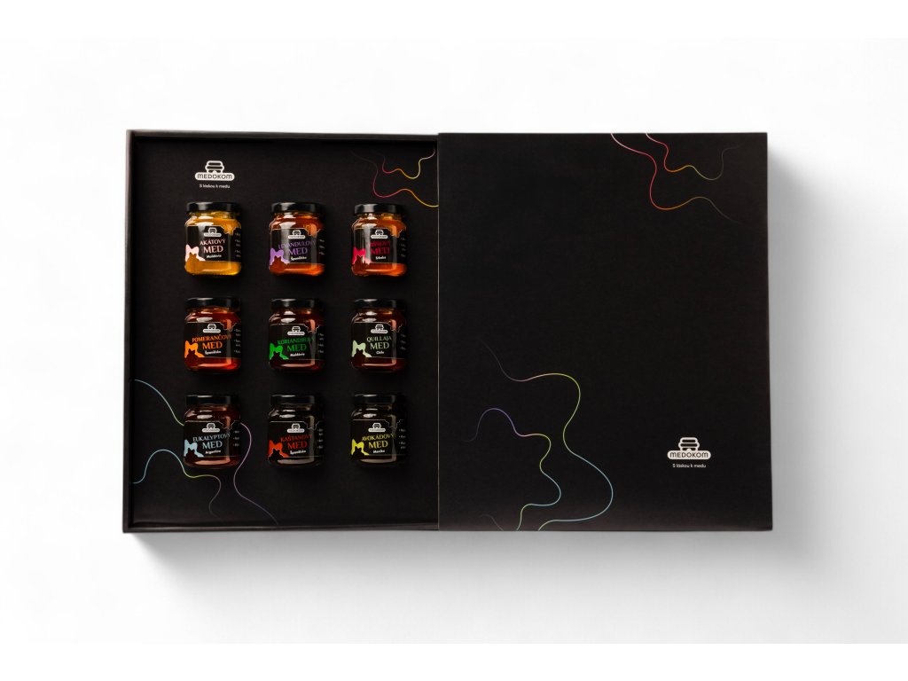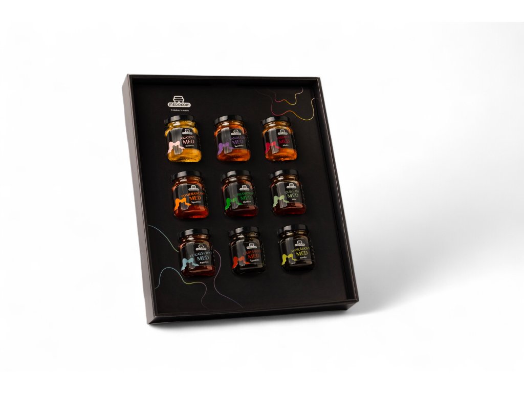 Sada je navržena tak, aby potěšila všechny smysly. Elegantní dárkové balení s devíti skleničkami představuje originální a reprezentativní dárek, který se hodí jak pro obchodní partnery, tak i pro vaše blízké. Na rozdíl od běžných firemních dárků nejde o něco, co skončí v šuplíku – med využije každý, a přitom potěší svou kvalitou i příběhem.